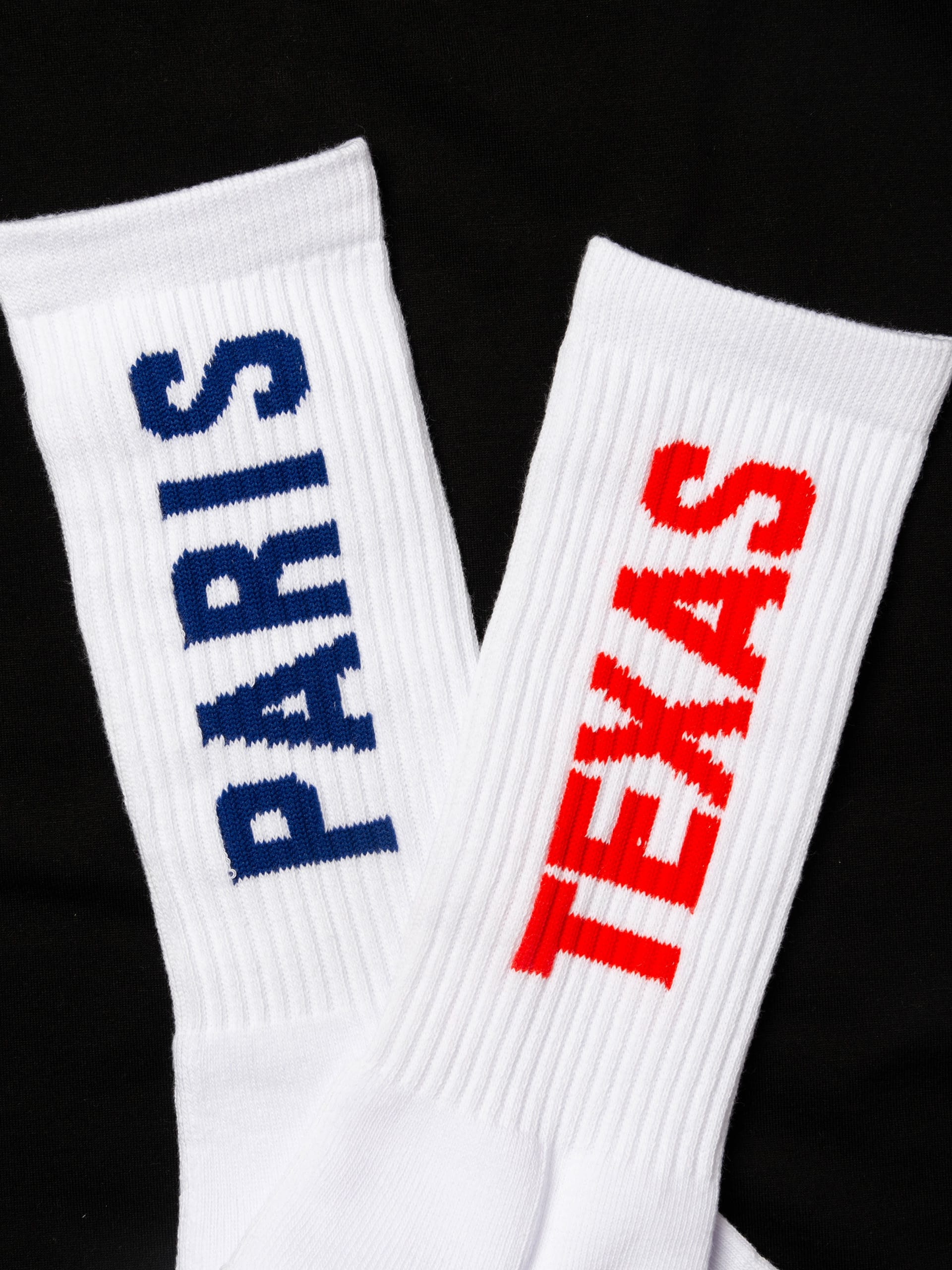 1984年・第37回カンヌ国際映画祭でパルムドールに輝いたヴィム・ヴェンダース監督の傑作ロードムービー「パリ、テキサス」とコラボレーションしたソックス。左右に「PARIS」「TEXAS」とプリントされたアシンメトリーなデザインです。