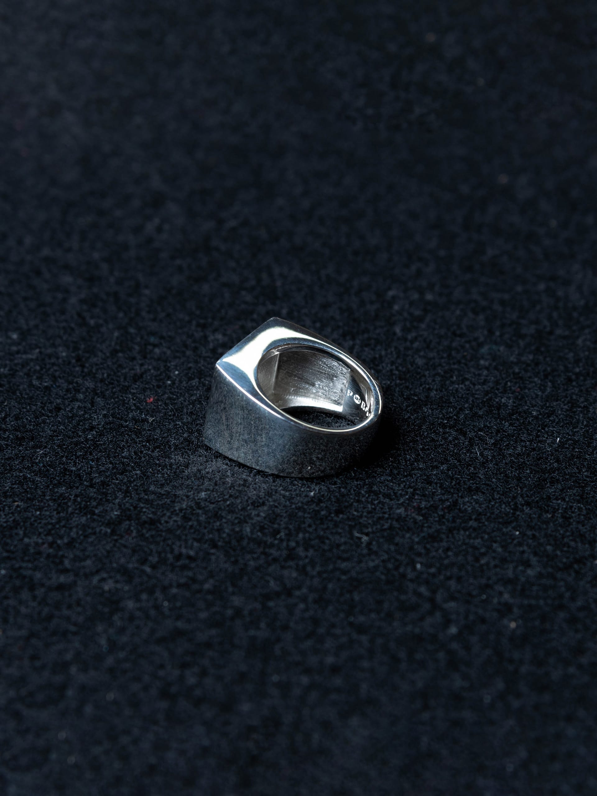 白黒のエナメル素材によるユニークなチェックパターンがとても印象深いシグネットリング。もちろん手作業によるものです。ハードでアイコニックなデザインは、あまり指輪をしない方にもお勧め。ぜひ取り入れてみてください。